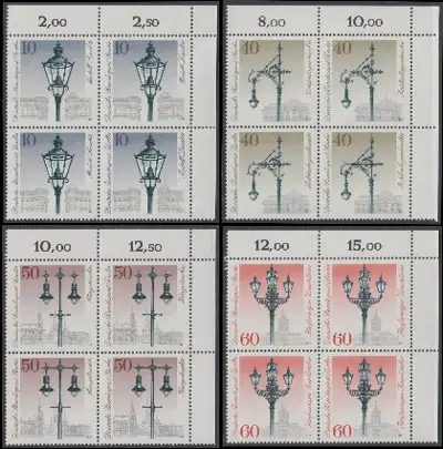 BERLIN 1979 Michel-Nummer 603-606 postfrisch SATZ(4) BLÖCKE ECKRÄNDER oben rechts - Historische Straßenlaternen