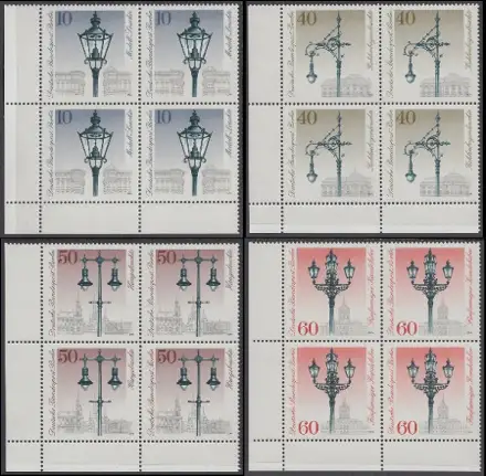 BERLIN 1979 Michel-Nummer 603-606 postfrisch SATZ(4) BLÖCKE ECKRÄNDER unten links - Historische Straßenlaternen