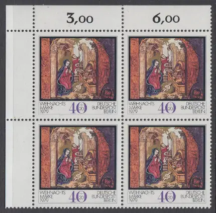BERLIN 1979 Michel-Nummer 613 postfrisch BLOCK ECKRAND oben links - Weihnachten