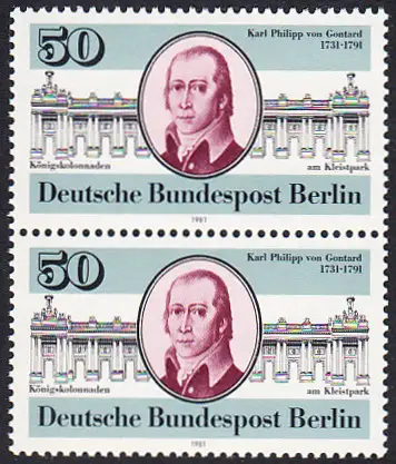 BERLIN 1981 Michel-Nummer 639 postfrisch vert.PAAR - Karl Philipp von Gontard, Architekt