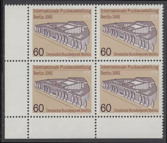 BERLIN 1981 Michel-Nummer 649 postfrisch BLOCK ECKRAND unten links - Internationale Funkausstellung (IFA), Berlin