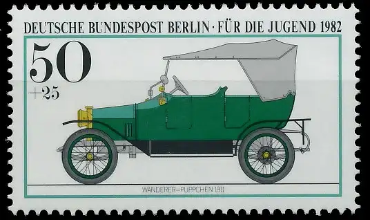50 + 25 Pfg Wert aus der Ausgabe Jugend 1982 - Historische Kraftfahrzeuge - Automobile