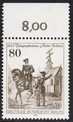 BERLIN 1983 Michel-Nummer 693 postfrisch EINZELMARKE RAND oben (a) - Telegraphenlinie Berlin-Coblenz