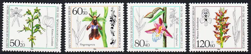 BERLIN 1984 Michel-Nummer 724-727 postfrisch SATZ(4) EINZELMARKEN - Orchideen