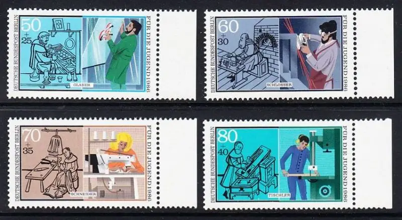 BERLIN 1986 Michel-Nummer 754-757 postfrisch SATZ(4) EINZELMARKEN RÄNDER rechts - Handwerksberufe