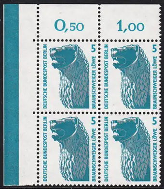 BERLIN 1990 Michel-Nummer 863 postfrisch BLOCK ECKRAND oben links - Sehenswürdigkeiten: Löwenstandbild, Braunschweig