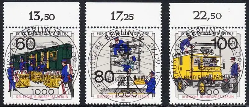 BERLIN 1990 Michel-Nummer 876-878 gestempelt SATZ(3) EINZELMARKEN RÄNDER oben (b)