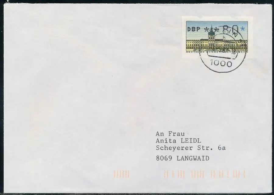 080 Pfg Wert aus der ATM-Ausgabe von 1987, FDC, auf normalem Brief
