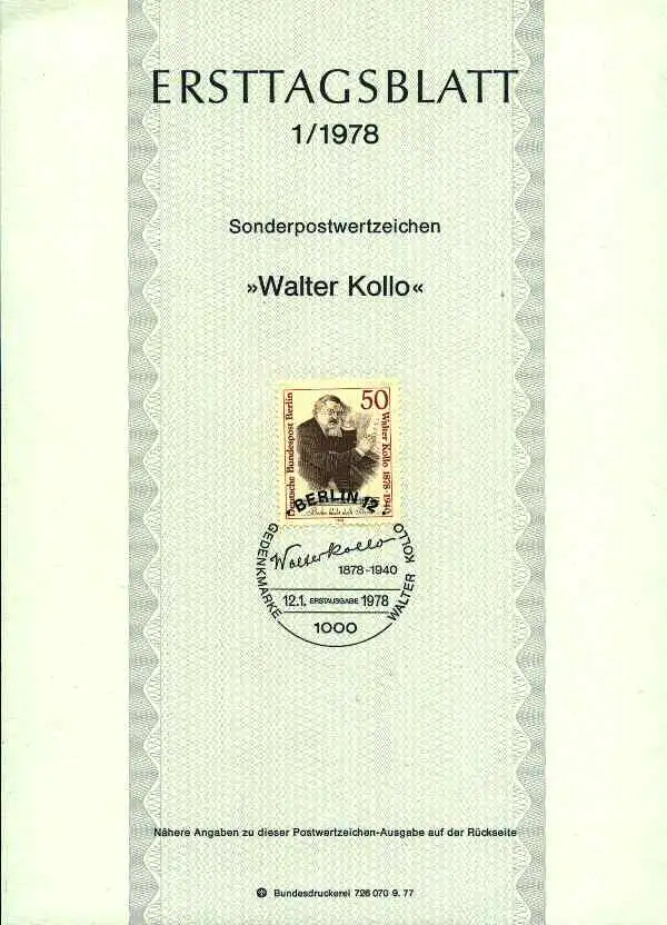 Kategorie 1: Deutschland, Berlin, Ersttagsblätter Berlin, ETB Jahrgang 1978 Berlin