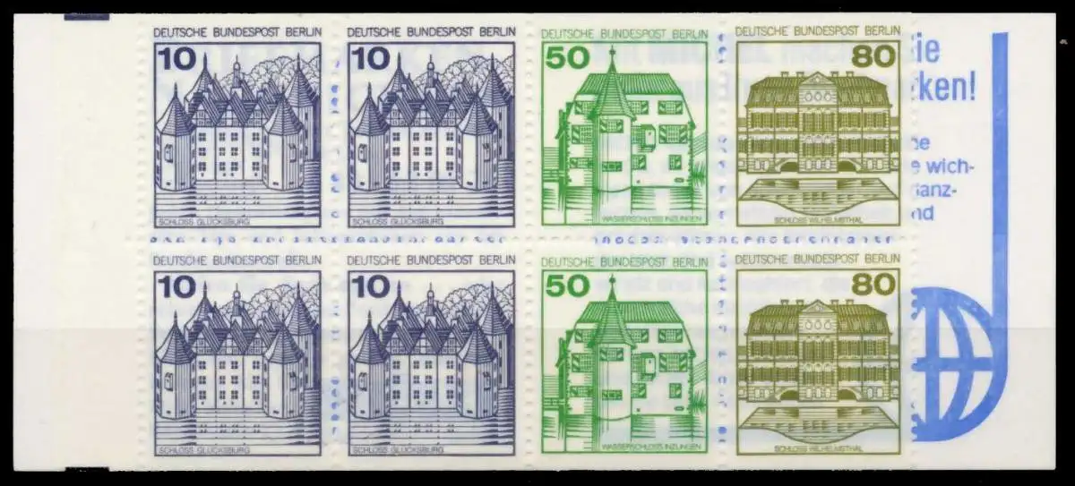 Burgen und Schlösser Markenheftchen 13 (10+10+50+80), oben und unten geschnitten, billigste Sorte