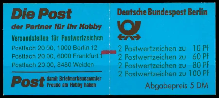 Berlin Sehenswürdigkeiten Markenheftchen 15 mit Zählbalken (MichelNr.: 15, 795C/D, 796C/D, 798C/D, 834C/D)