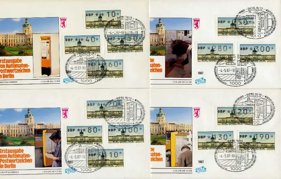 ATM-Ausgabe von 1987 Versandstellen Satz VS1 auf 4 FDCs