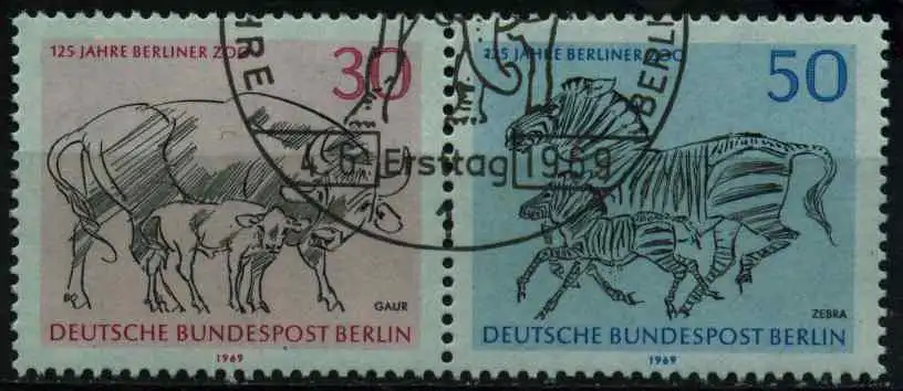 Waagrechter Zusammendruck 30+50 Pfg aus der Blockausgabe 125 Jahre Berliner Zoo (MichelNr.: 1022, 340, 341)