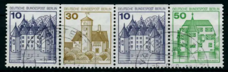 10+30+10+50 aus den Zusammendrucken Burgen und Schlösser Berlin / halbes Heftchenblatt oben geschnitten (MichelNr.: 1102067, 532C, 534C, 615C)