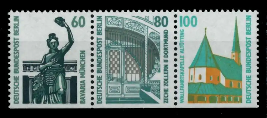 60+80+100 unten geschnitten aus den Zusammendrucken Sehenswürdigkeiten Berlin (MichelNr.: 1141096, 795D, 796D, 834D)