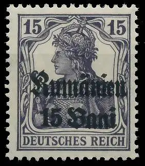 15 Bani auf 15 Pfg Aufdruckausgabe Deutsche Militärverwaltung in Rumänien auf den Freimarken des deutschen Reiches (Germania 1916/1918) - Aufdruck Rumänien (Frakturschrift) und neue Wertangabe, herstellungsbedinge Unebenheiten der Gummierung / Schlieren