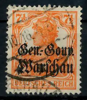 7 1/2 Pfg Wert aus der Aufdruckausgabe Deutsche Post in Polen auf den Freimarken des deutschen Reiches (Germania 1916/1918) - Aufdruck Gen.-Gouv. Warschau - rußig