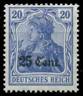 25 Cent auf 20 Pfg Wert aus der Aufdruckausgabe Etappengebiet West auf den Freimarken des deutschen Reiches (Germania 1914/1918)