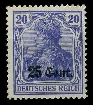 25 Cent auf 20 Pfg Wert aus der Aufdruckausgabe Etappengebiet West auf den Freimarken des deutschen Reiches (Germania 1914/1918)