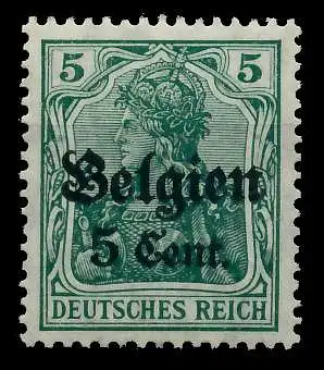 5 Cent auf 5 Pfg Wert aus der Aufdruckausgabe Landespost in Belgien (Generalgouvernement) auf den Freimarken des deutschen Reiches (Germania 1916/1918), mit kurzem Aufdruck