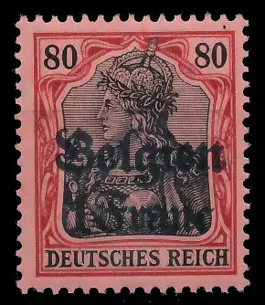 1 Franc auf 80 Pfg Wert aus der Aufdruckausgabe Landespost in Belgien (Generalgouvernement) auf den Freimarken des deutschen Reiches (Germania 1914/1918)
