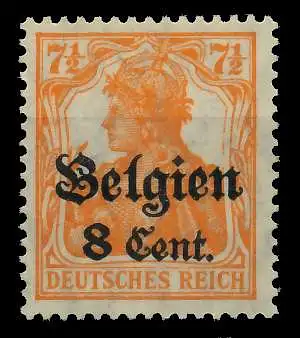 8 Cent auf 7 1/2 Pfg Wert aus der Aufdruckausgabe Landespost in Belgien (Generalgouvernement) auf den Freimarken des deutschen Reiches (Germania 1916/1918), mit kurzem Aufdruck
