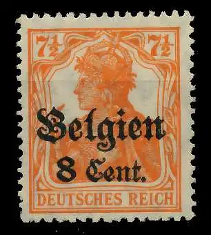 8 Cent auf 7 1/2 Pfg Wert aus der Aufdruckausgabe Landespost in Belgien (Generalgouvernement) auf den Freimarken des deutschen Reiches (Germania 1916/1918), mit kurzem Aufdruck