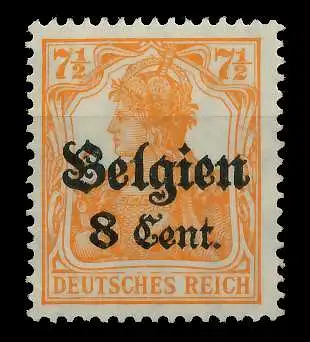 8 Cent auf 7 1/2 Pfg Wert aus der Aufdruckausgabe Landespost in Belgien (Generalgouvernement) auf den Freimarken des deutschen Reiches (Germania 1916/1918), mit kurzem Aufdruck