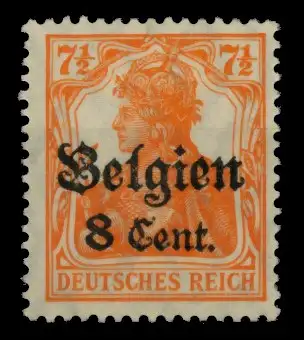 8 Cent auf 7 1/2 Pfg Wert aus der Aufdruckausgabe Landespost in Belgien (Generalgouvernement) auf den Freimarken des deutschen Reiches (Germania 1916/1918), mit kurzem Aufdruck