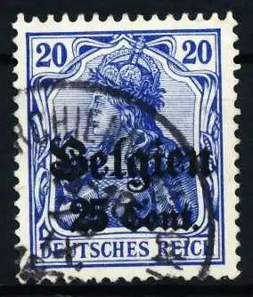 25 Cent auf 20 Pfg Wert aus der Aufdruckausgabe Landespost in Belgien (Generalgouvernement) auf den Freimarken des deutschen Reiches (Germania 1916/1918), mit kurzem Aufdruck