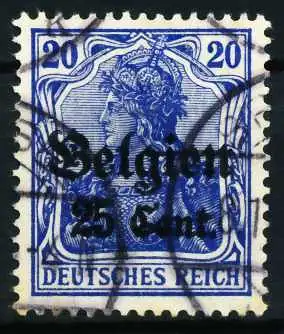 25 Cent auf 20 Pfg Wert aus der Aufdruckausgabe Landespost in Belgien (Generalgouvernement) auf den Freimarken des deutschen Reiches (Germania 1916/1918), mit kurzem Aufdruck