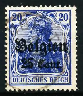 25 Cent auf 20 Pfg Wert aus der Aufdruckausgabe Landespost in Belgien (Generalgouvernement) auf den Freimarken des deutschen Reiches (Germania 1916/1918), mit kurzem Aufdruck