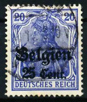 25 Cent auf 20 Pfg Wert aus der Aufdruckausgabe Landespost in Belgien (Generalgouvernement) auf den Freimarken des deutschen Reiches (Germania 1916/1918), mit kurzem Aufdruck