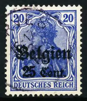 25 Cent auf 20 Pfg Wert aus der Aufdruckausgabe Landespost in Belgien (Generalgouvernement) auf den Freimarken des deutschen Reiches (Germania 1916/1918), mit kurzem Aufdruck