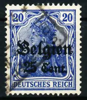 25 Cent auf 20 Pfg Wert aus der Aufdruckausgabe Landespost in Belgien (Generalgouvernement) auf den Freimarken des deutschen Reiches (Germania 1916/1918), mit kurzem Aufdruck