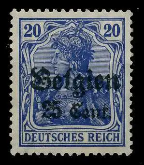25 Cent auf 20 Pfg Wert aus der Aufdruckausgabe Landespost in Belgien (Generalgouvernement) auf den Freimarken des deutschen Reiches (Germania 1916/1918), mit kurzem Aufdruck