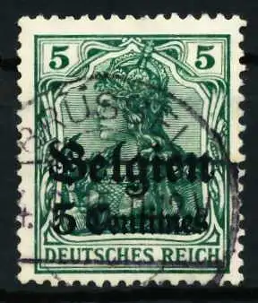 5 Centimes auf 5 Pfg Wert aus der Aufdruckausgabe Landespost in Belgien (Generalgouvernement) auf den Freimarken des deutschen Reiches (Germania 1914/1918)
