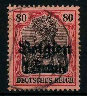 1 Franc auf 80 Pfg Wert aus der Aufdruckausgabe Landespost in Belgien (Generalgouvernement) auf den Freimarken des deutschen Reiches (Germania 1914/1918)