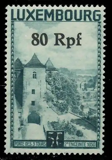 80 Rpf Freimarken von Luxemburg mit Aufdruck des neuen Wertes in "Rpf" (Rosettenüberdruck) - Normalabstand