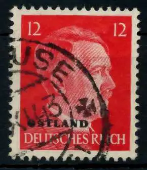 12 Pfg Wert aus der Freimarkenausgaben Hitlerkopf mit Aufdruck "Ostland" Buchdruck