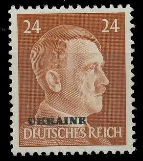 24 Pfg Wert aus der Freimarkenausgaben Hitlerkopf mit Aufdruck "Ukraine"