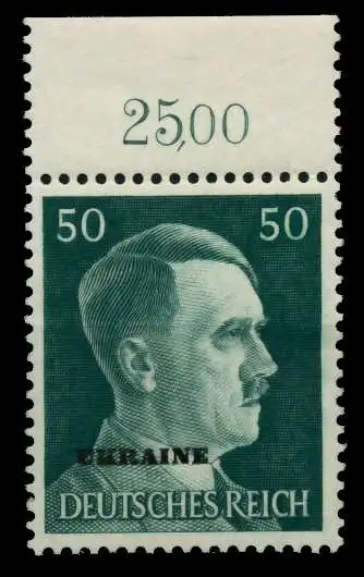 50 Pfg Wert aus der Freimarkenausgaben Hitlerkopf mit Aufdruck "Ukraine"