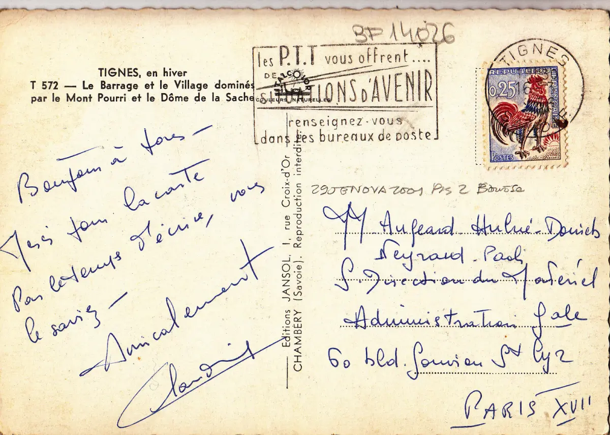 BF14026 tignes en hiver le barrage et le village france front/back image