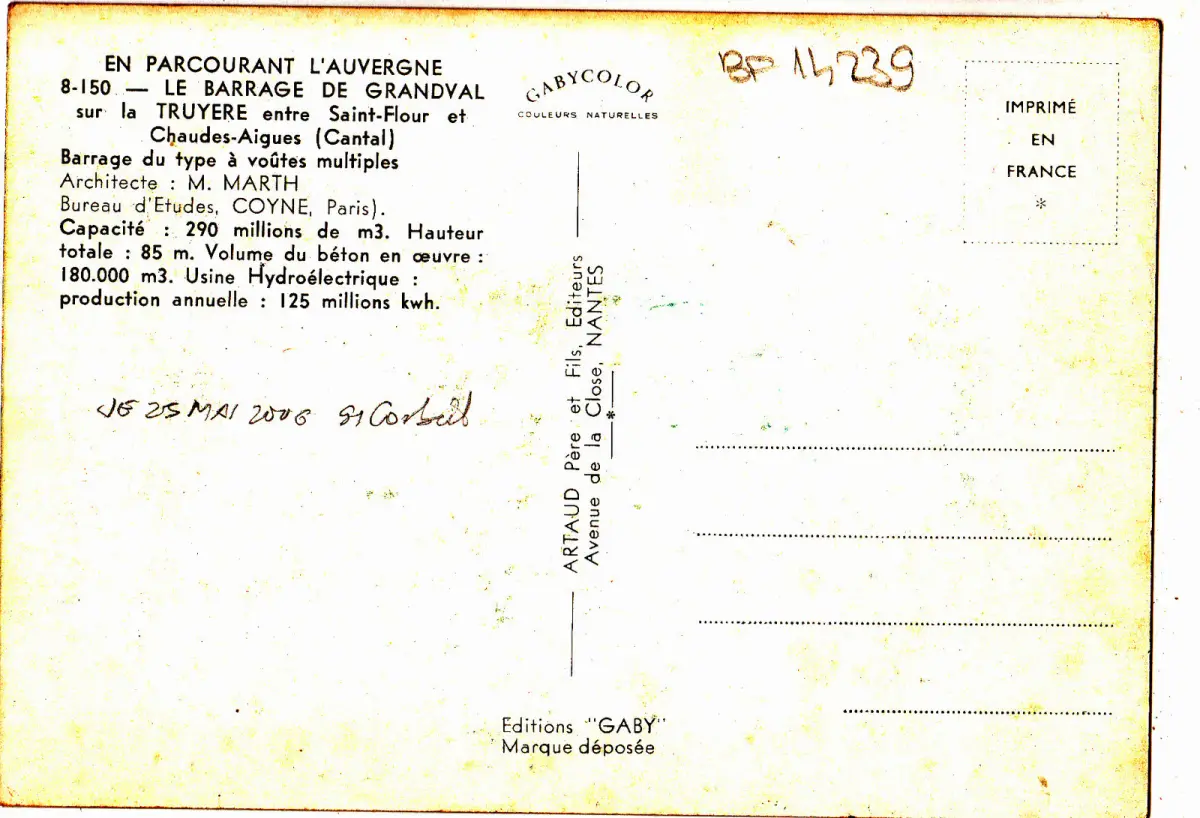 BF14239 le barrage de grandval sur la truyere entre sf france front/back image