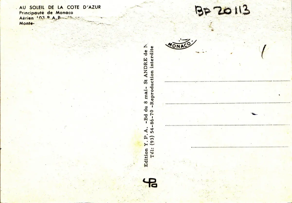BF20113 principaute de monaco aerien france front/back image