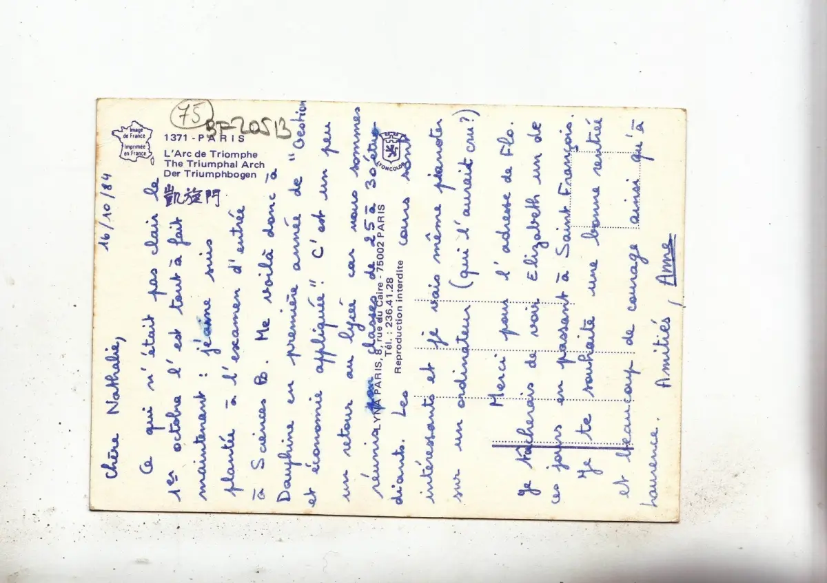 BF19967 paris jardin des tuileries et arc de triomphe france front/back image