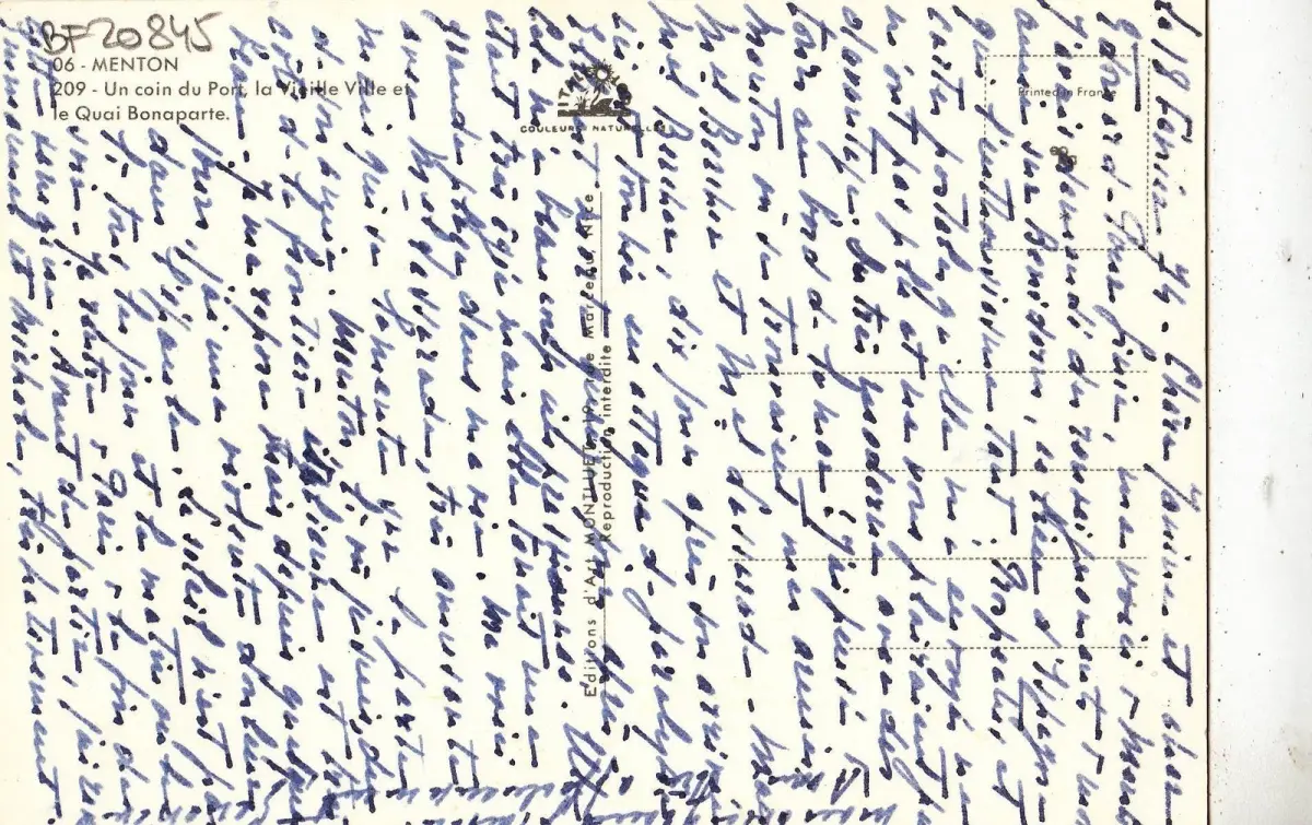 BF20845 menton un coin du pont ship france front/back image