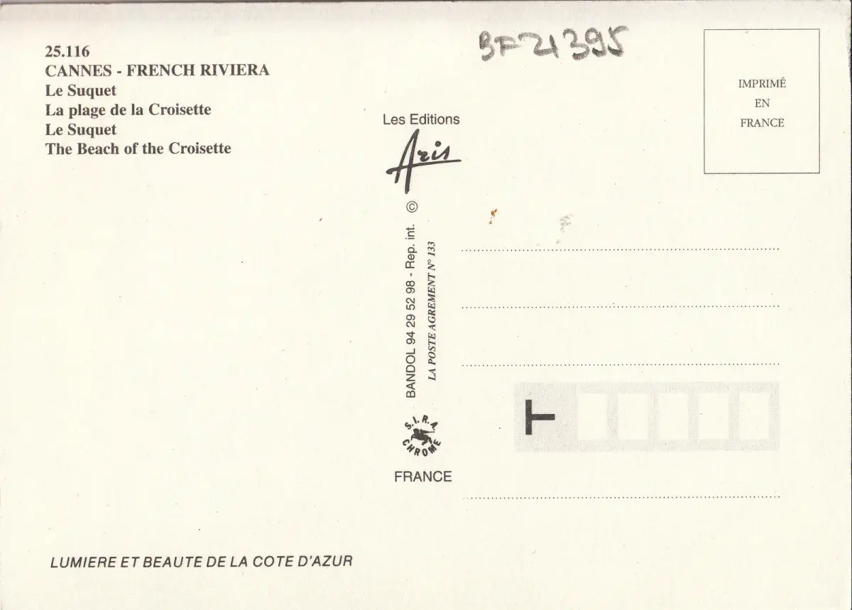 BF21395 cannes le suquet la plage de la croissete france front/back image