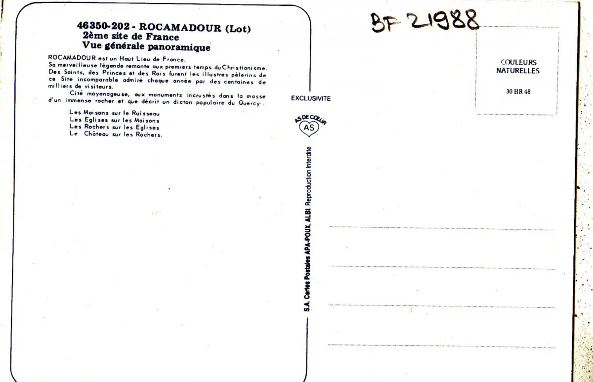 BF27534 rocamadour lot vu de la route de cahors france front/back image