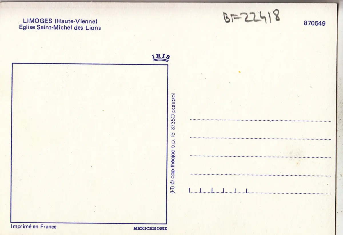 BF22418 limoges h v eglise saint michel des lions i france front/back image